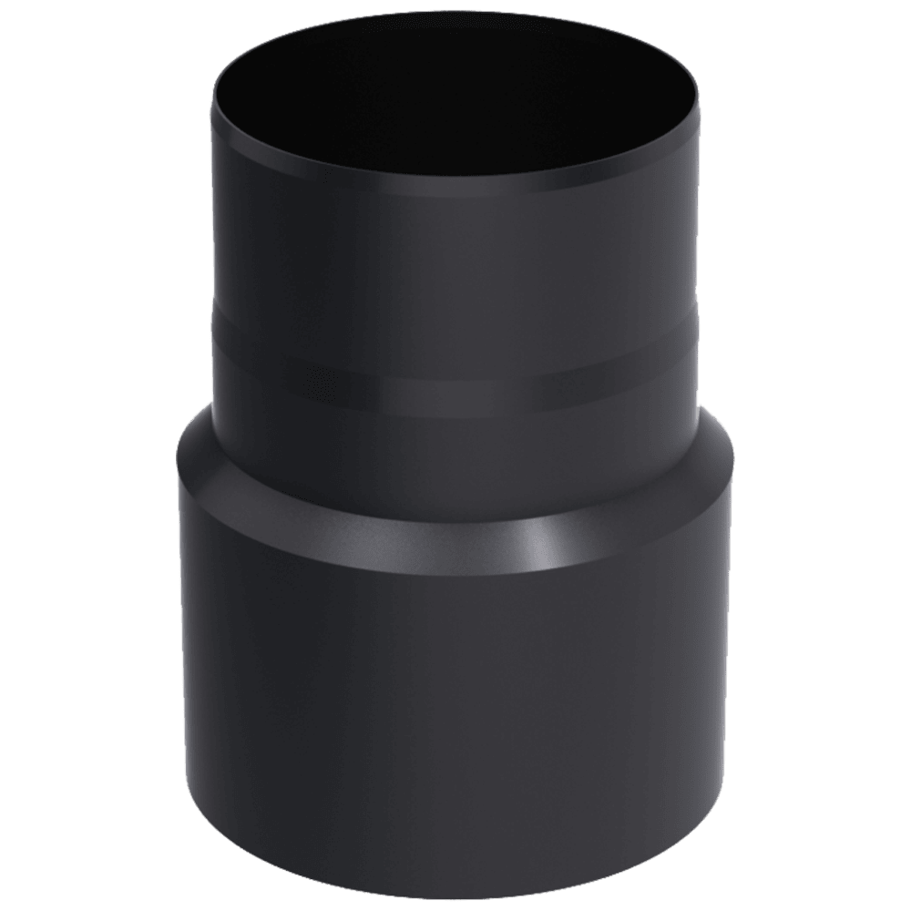 Редукцията се използва за промяна на диаметъра на димните канали. Той дава възможност за свързване на тръби с различни напречни сечения. Характеристики: - Вътрешен диаметър: 150 mm - Външен диаметър: 130 mm - Височина: 150 mm - Температурно съпротивление: 1000 ° C - Материал: Стоманен лист - Покрит с черна топлинна боя.