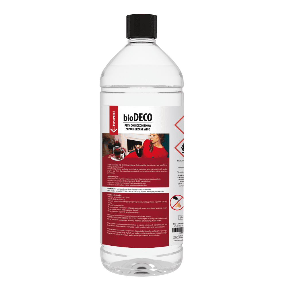 Един литър биогориво гори в продължение на 2-5 часа, в зависимост от размера на пламъка. Това е ефикасен и сравнително евтин енергиен източник. Само след няколко минути употреба се усеща забележимо повишаване на температурата в помещението. Допълнително предимство на биогоривото е липсата на сажди или пепел, които се получават при горене в традиционните камини. Изгарянето на биогориво не изисква специални димоотводи за камина . То изисква само – както при други устройства с открит пламък – относително постоянно подаване на въздух. Биогорива с тази функция може да се използва и за ароматерапия. Биогоривото не изсушава въздуха, а го овлажнява. Чрез добавяне на ароматни масла можем да използваме биокамина като терапевтично устройство. Магията и очарованието на огъня в камината създават уютна атмосфера в дома и са източник на релаксация. Биогоривото е полски продукт, 100% екологичен. Предлага се в опаковки от 1 литър.