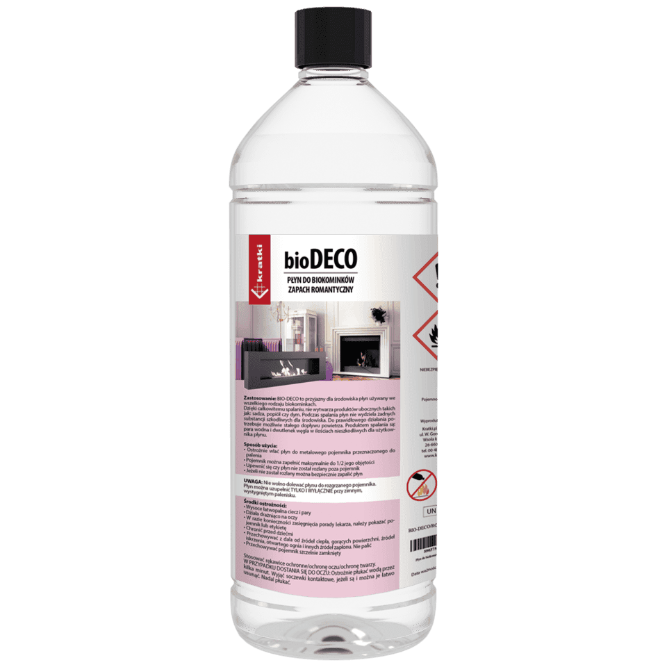 Специална течност с романтичен аромат, подходяща за употреба в камини като органичен източник на енергия. Алкохолът, получен от биологичното гориво, изгаря напълно, без да отделя миризма или дим. Продуктът от горенето е водна пара и въглероден диоксид в количества, подобни на въздуха, издишван от човек. Следователно е напълно безопасно за здравето. Горивото е тествано и одобрено за употреба от Националния институт за обществено здраве. 1 литър биогориво гори в продължение на 2-5 часа - в зависимост от размера на пламъка. Това е ефикасен и сравнително евтин източник на енергия. Още след няколко минути от употребата му е ясно забележимо повишаване на температурата в помещението. Допълнително предимство е липсата на сажди или пепел от биогориво, които се образуват при опушване на традиционни камини. Изгарянето на биогорива не изисква специално окабеляване на камината. Нужно е само - както при други устройства с открит огън - евентуално постоянно подаване на въздух. Използването на биогорива може да се използва и за ароматерапия. Биогоривото не изсушава въздуха, а го овлажнява. С етеричните масла използваме биокамината като лек. Магията и очарованието на камината създават уютна атмосфера и са източник на релаксация. Биогоривото е полски продукт, 100% органичен. Предлага се в опаковки от 1 литър. УКАЗАНИЯ: Изсипете течността за опушване в контейнера за опушване. Контейнерът може да се напълни само до 2/3 от обема му. Уверете се, че течността не е разлята от контейнера и не се е запалила. ЗАБЕЛЕЖКА: Не изливайте в биокамина, работеща с биогориво.