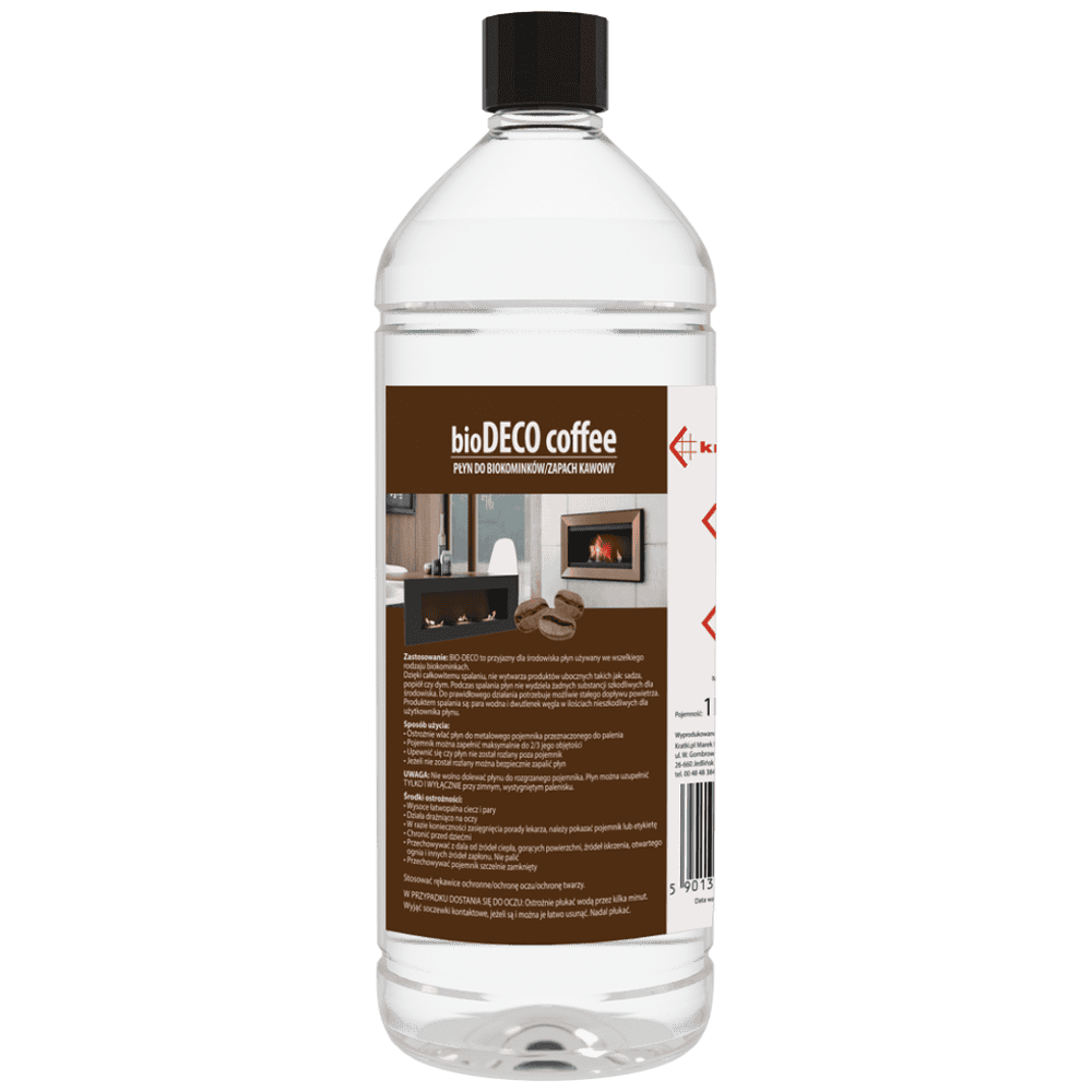 Специална течност с аромат на кафе, предназначена за употреба в камини като екологичен източник на енергия. Получена от биологичен алкохол, тя изгаря напълно, без да отделя нито мирис, нито дим. Продуктите от горенето включват водна пара и въглероден диоксид в количества, подобни на тези в издишания въздух. Следователно, тя е напълно безопасна за здравето .